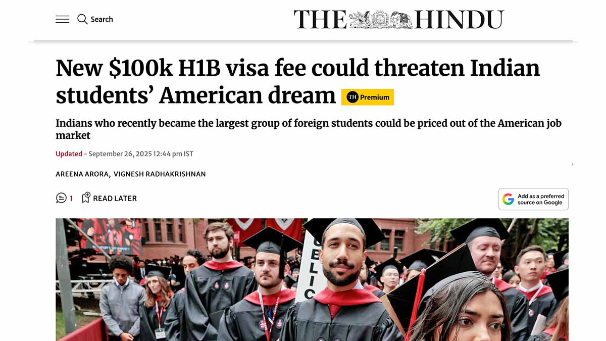 Article: New $100k H1B visa fee could threaten Indian students’ American dream