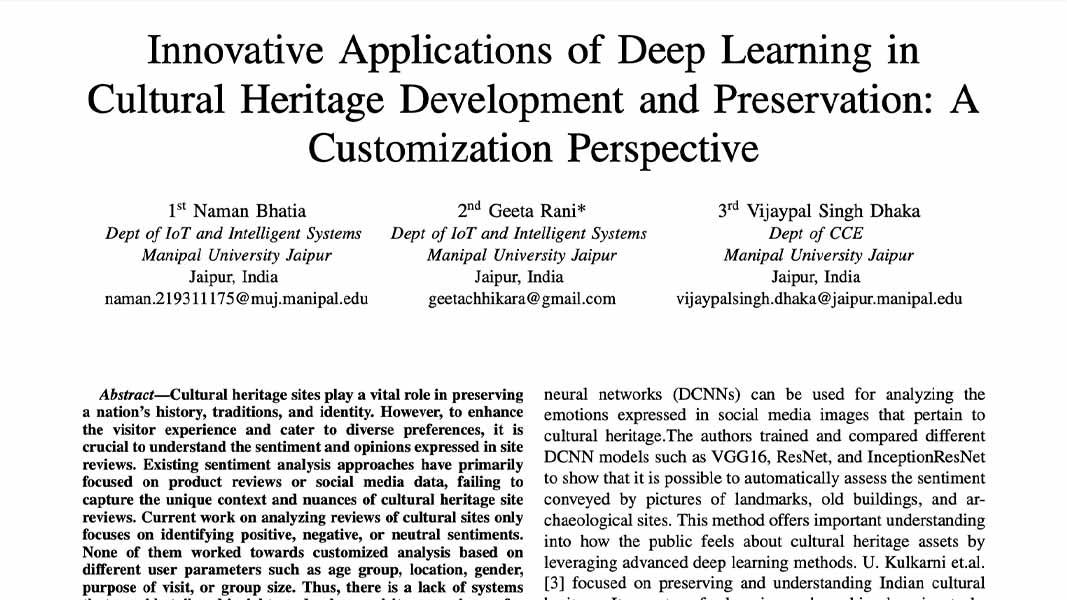Research Paper: Innovative Applications of Deep Learning in Cultural Heritage Development and Preservation: A Customization Perspective